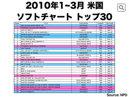 この時期には、昨年と同様に、『ポケットモンスター』を除いて、任天堂の新作ソフトはほとんど出ていません。また、昨年11月に発売され、ビデオゲームソフトとして初動記録を塗り替えたアクティビジョンさんの『Call of Duty: Modern Warfare 2』というソフトに需要が集中することを懸念された多くのソフトメーカーさんが、他社さんのプラットフォーム向けの大作ソフトの発売を年末から年明けに延期されまして、この1〜3月期に発売されましたので、昨年以上に、いわゆるゲーマー向けの大作ソフトが、数多く発売された時期でもありました。