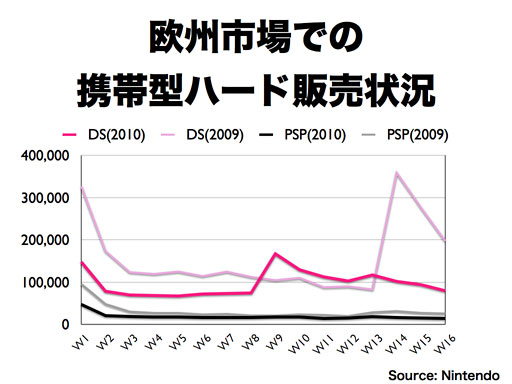 一方、ヨーロッパのDSハードですが、アメリカと異なり、前年に比べて低調に推移しています。