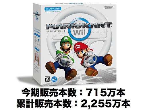 これは、昨年のソフトではなく、一昨年春に発売したソフトですが、『マリオカートWii』は、今期だけで715万本の販売となり、累計は、2,000万本を大きく超えています。 最近でも、日本で2年前に発売したソフトに対して新たに新作コマーシャルを制作して放映するという前例のないことをしているのですが、