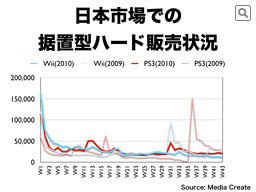 今年に入ってからしばらくの間は、昨年以上のペースで推移しましたが、昨年秋にハードの値下げなどで盛り上がりがあった時期に比べると、直近の販売数は低い水準になっています。特に、直近のWiiの販売ペースは特に低くなっており、発売以来最も低い水準になっていますが、この背景には、来月、Wiiリモコンプラスを同梱したパッケージへ変更することを、今月前半にアナウンスしたことも影響していると思います。ただし原因はどうであれ、現在の水準は低く、年末に向けて状況を変えなければならない状況です。
