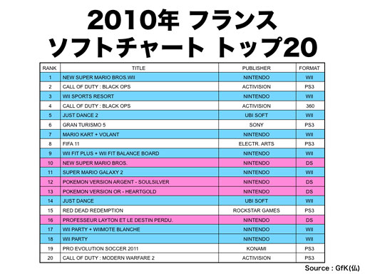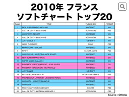 こちらは、フランスにおける昨年のソフト年間販売上位20位までのヒットチャートです。