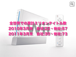 Wiiについても、全世界の出荷ベースで100万本を超えたタイトルは、前期末までの累計では、任天堂・ポケモンのタイトルが30タイトル、ソフトメーカーさんのタイトルが73タイトルとなりました。