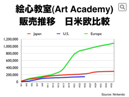 ご覧のように、緑色のヨーロッパの販売は、年が明けてからも順調に伸びており、完全にDSの定番ソフトとしての地位を確立できたのではないかと思います。ヨーロッパには、絵画芸術への興味を持たれるお客様が多いのだと思いますが、ポテンシャルはまだまだある手応えがあります。