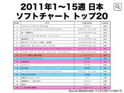 また、任天堂が、この時期、ニンテンドー3DSの販売に向けて集中して、WiiやDS向けの新作をほとんどリリースできていないこと、あるいは3月に東日本大震災の影響を大きく受けたことなどの要因もありますが、 任天堂自身が発売したタイトルも、トップ10にはひとつもありません。