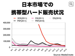 任天堂は、2月に日本で、3月に海外で、ニンテンドー3DSを発売し、年明け以降は、3DS中心の展開を図ったこともあり、年明け以降のソフト面での大きな話題は、3月の海外でのポケットモンスター最新作『ポケットモンスターブラック・ホワイト』以外にはありませんでした。このため、年明け以降は、従来機であるニンテンドーDSやWiiが、市場において例年のような存在感を示すことはできていないというのは、みなさんもご存じのとおりです。