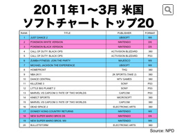 これは、 今年に入ってからこの3カ月のアメリカのソフト販売上位20位までのヒットチャートです。