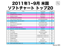 また、日本では昨年9月に発売された『ポケットモンスターブラック・ホワイト』が、今年3月に発売されましたので、それも上位に入り、あとは、DSとWiiの『New スーパーマリオブラザーズ』が定番として上位にあります。昨年は、この中に、『Wii Fit Plus』、『Wii Sports Resort』、『Mario Kart Wii』などのWii向けの定番ソフトが含まれていましたが、今年は、アメリカのチャートには入らなくなっています。