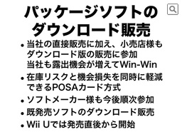 また、パッケージソフトのダウンロード販売は、Wii Uでは、ハード発売直後から開始する予定です。