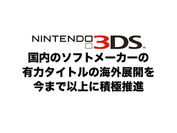 その一方で、日本では、携帯ゲーム機のシェアが高く、ゲームビジネスにおいて携帯型ソフトの重要性がより大きいことから、ソフトメーカーさんの有力チームが、精力的にニンテンドー3DS向けの有力タイトルを開発されています。