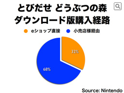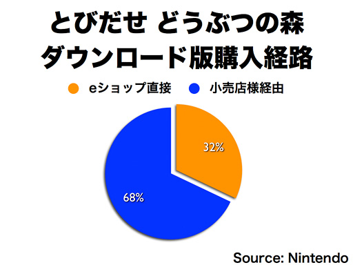 「ダウンロード版の希望小売価格を値下げするわけでもないのに、本当に小売店さん経由でダウンロード版が売れるのか?」と疑問に思っておられた方もおられたかもしれませんが、実績として、『どうぶつの森』のダウンロード版は、
