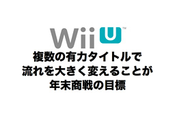 先ほど、「ひとつのタイトルの発売だけで、簡単には状況が変えられない」ということを申し上げましたが、「幅広いお客様にアピールすることのできる複数の有力タイトルによって、Wii Uを取り巻く流れを大きく変える」ことが、今年の年末商戦におけるWii Uの目標になります。