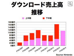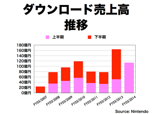 今期の上半期のダウンロード売上は、昨年の下半期を超えて、前年度の上半期の2倍以上の114億円になりました。この中で、パッケージソフトのダウンロード販売がおおよそ半分くらいを占めていますが、一方で、パッケージソフトのダウンロード販売以外のデジタルビジネスも順調に拡大しています。