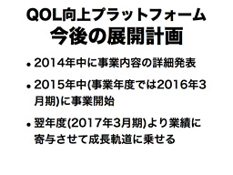 今日は、方向性の話とさせていただきますが、2014年中には、事業内容の詳細に関する発表を予定しています。具体的にどんな特徴があるのか、ノン・ウェアラブルとはどういうものなのか、ということも、そこで具体的にお話しします。そして、この事業は2015年4月から始まる、事業年度では2016年3月期に事業を開始する予定です。全く新しい事業ですので、翌年度から業績に寄与させて、成長軌道に乗せることを目指していきます。