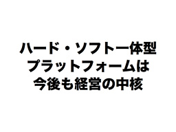 ですから、当社が、「ハード・ソフト一体型のビデオゲーム専用機プラットフォームを経営の中核とすること」は、今後も変わりません。当然のことながら、今までと変わらず、将来のために新しいハードの研究開発も進めていますし、当社が自社ハードを捨てて、他のプラットフォームに軸足を移すということも考えていません。