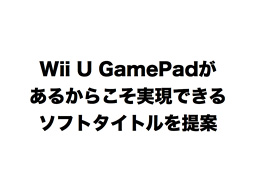 これまで、テレビの周りに多人数が集まって楽しんでいただく際に、GamePadがあるからこそ実現できたソフトタイトルはすでにいくつか提案できたと考えていますが、テレビの前に一人でいるとき、GamePadがあるからこそ実現できたソフトタイトルとしては、まだ、決定打をお示しできていないと私達も自覚しておりますので、本件は、宮本の指揮する当社の内作開発部門の今年の最優先課題のひとつとして取り組んでいきます。