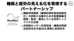 この睡眠と疲労の見える化を実現するために、アメリカに本社があるResMedさんという会社と業務提携をいたしました。