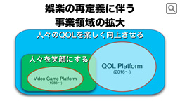 前回の経営方針説明会でお話ししたように、これから我々は娯楽を「人々のQOLを楽しく向上させる」と再定義することによって、事業領域を拡大することになりました。その取り組みの中で、QOL向上プラットフォームというものを生み出そうとしているとご理解ください。