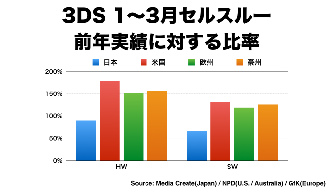 当期第4四半期には、Newニンテンドー3DSの発売により、海外市場において、ハード・ソフトが前年に対して大きく伸び、プラットフォームの勢いを取り戻すことができたことがおわかりいただけると思います。