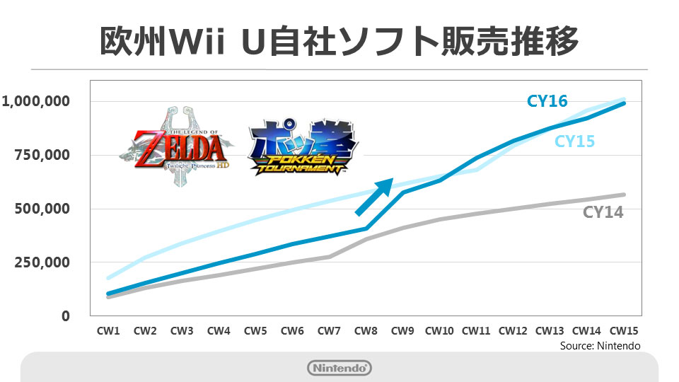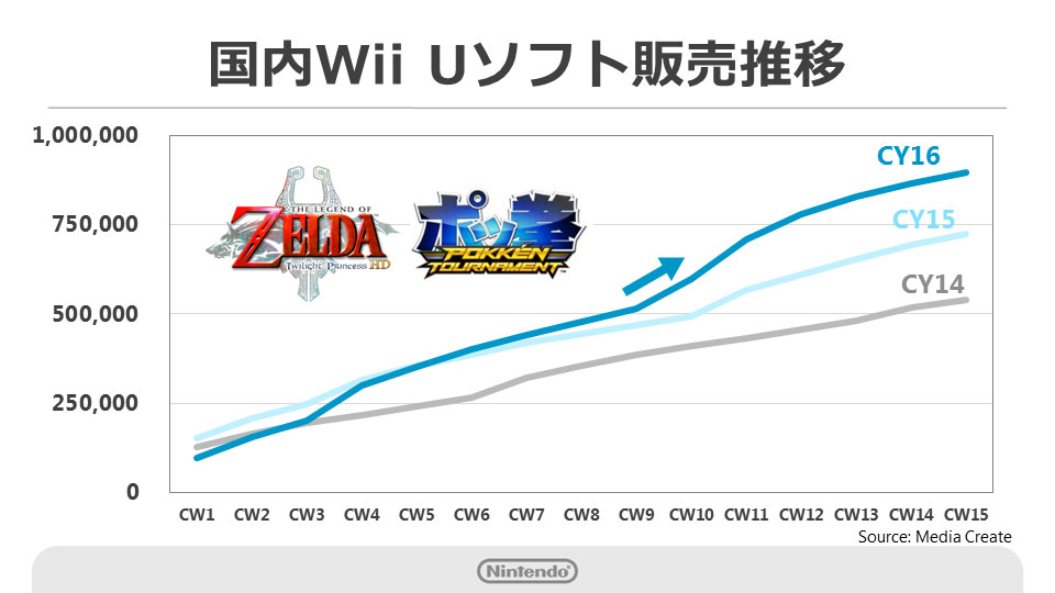 年明け以降も『Splatoon(スプラトゥーン)』が継続的に売れている中、今年の3月10日に『ゼルダの伝説 トワイライトプリンセス HD』、3月18日に『ポッ拳 POKKÉN TOURNAMENT』の発売などがあり、足下の状況は過去2年間よりも好調に推移しています。