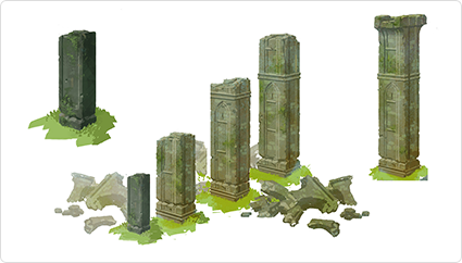 ステージ制作とは、ゲームの地形・海・空・建物などの背景グラフィックづくりです。「背景」といっても一枚の絵ではなく、そのなかを実際に歩き回ったり、さまざまな角度から眺めたりするため、空間を丸ごとデザインします。