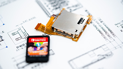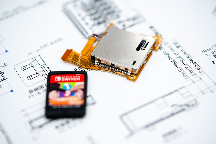 たとえば、Nintendo Switch本体とJoy-Conの接続のために専用コネクタ開発を行い、Nintendo Switchの特徴である「いつでも、どこでも、誰とでも」の実現に貢献しました。筐体部品では、ゲームカードとゲームカード用コネクタは専用機構部品となっており、製品の魅力を引き出すために開発を行いました。