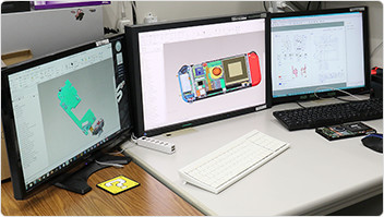 設計には3D CADを使用し、デザイナーがデザインした形状を基に基板やさまざまな部品の形状や配置を決めるレイアウト設計に始まり、さまざまな部品や構造を詳細に設計(開発)していきます。