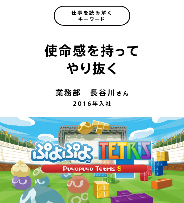 Nintendo Switchが発売される前年に入社した私は、業務部に配属されました。この部署の主な業務の一つは、ソフトメーカーさんがゲームソフトを発売するまでのサポートを行うことです。Nintendo Switchの発売と同時に、各メーカーさんから17本のゲームソフトがリリースされることになっており、私は現場研修を受けたあと、これらのメーカーさんの窓口業務を担当することになりました。
