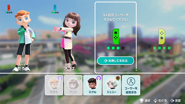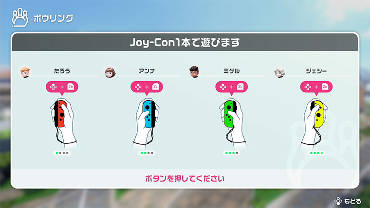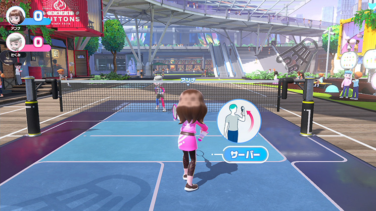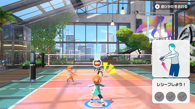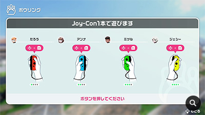 このゲームは、最大4人まで同時に遊ぶことができますが、実際にはテレビの前に4人以上が集まって遊ぶことが想定されました。そのためゲームを触ったことのない方も含めて、みんなで交代しながら遊んだときに、誰がどのキャラクターでプレイしているのか、直感的に分かりやすくする必要がありました。ゲームの表示は、一人目のプレイヤーに「1P」、二人目に「2P」といった表示をすることが多いのですが、ゲームを触ったことのない方にとっては馴染みのない言葉です。そこで、『Nintendo Switch Sports』ではあえてそのような表現は使わず、手に持っているJoy-Conとプレイヤーの名前を目印にすることを検討し始めました。