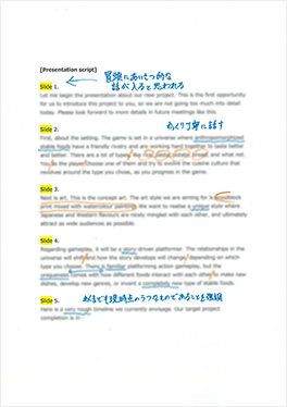 そこで、プレゼンテーションの事前準備が非常に重要になります。通訳者として発表者へのヒアリングはもちろん欠かせませんし、その企画に対する思い入れや、どの部分をいちばん強調したいのかについては、事前にすり合わせをします。また、発表者とリハーサルを行うこともあり、それができないときは、私がひとりで本番に向けた練習を何度も行って、本番でスムーズに通訳できるように口を慣らしておくことも怠りません。ただ、プレゼンテーションを成功に導くための最大のポイントは、“開発者の熱い想いを通訳する”ということだと私は考えています。