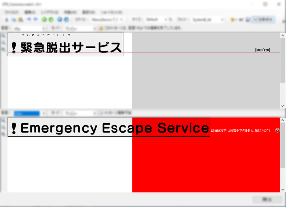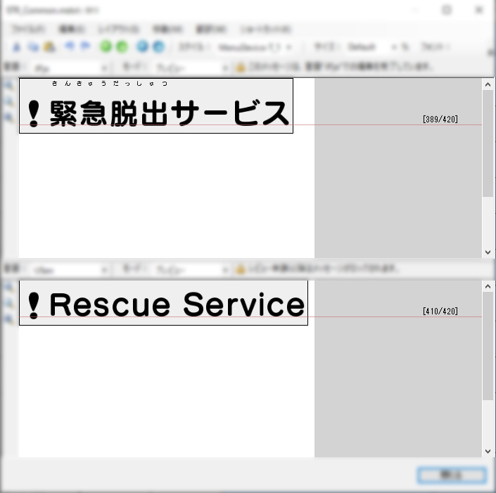 そこで私は、ゲーム画面を確認することなく実際の表示に近い状態で「枠」とテキストを確認できるようなシミュレーション機能を、翻訳ツール上に実装することにしました。