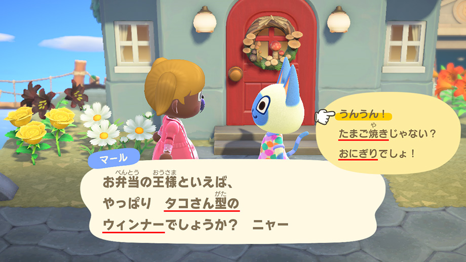 例えば『あつまれ どうぶつの森』の中では、お弁当に入れるものとして「タコさんウィンナー」といったセリフが登場します。これをそのまま英語に翻訳すると「octopus sausages」になるのですが、英語圏の地域ではお弁当に入れるものとして一般的ではありません。そのため、遊んでいるお客様からするとゲームのキャラクターがたどたどしいセリフを話しているように感じられ、キャラクターの魅力が損なわれてしまいます。