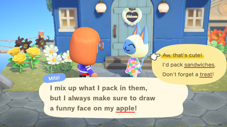 実際のゲームでは「octopus sausages」の代わりに、英語圏でピクニックに定番の「apple」や「sandwiches」を使い、そのキャラクターらしさを損なわないセリフへ変えることで、文化の差を補いつつ日本語と同じお弁当の話題で会話をしています。その言語が使われている地域の文化に合わせた表現にすることで、より多くの人にとって馴染みやすい翻訳に仕上げることができるのです。
