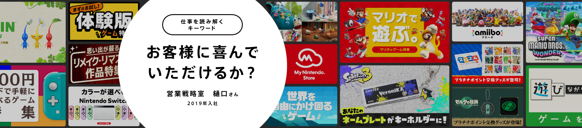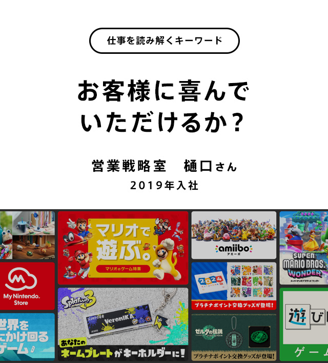 新しいゲームは次々と発売されますが、お客様がゲームと出会うタイミングはまちまちです。発売から年月が経過しているタイトルであっても、新鮮な気持ちで魅力を感じていただけることがあるはずだと私は考えています。多くの選択肢が存在するなかで、お客様に寄り添ったタイトルの魅力をお伝えしていくことは、私がMy Nintendo Storeで挑戦し続けていきたいことの一つです。一人でも多くのお客様にゲームとそのキャラクターの魅力や価値を知ってもらい、「お客様に喜んでいただける」ことにつながればとてもうれしいですね。