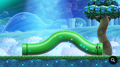 『スーパーマリオブラザーズ ワンダー』は、タイトルに“ワンダー”とあるように、新たな驚きとワクワクに満ち溢れた内容のゲームです。マリオシリーズでおなじみの土管が尺取り虫のように動き出す「尺取り虫土管」は本作で初めて登場するので、これまでにない驚きと楽しさが含まれた音で表現をしたいと思いました。最初は「ズズズー」といった土管が地面を擦るような音をつけてみましたが、現実の世界で土管が生き物のように動くことはないため、実際の事象や音を参考にすることはできませんでした。土管が動くという生き物らしさや驚きをうまく表現できず、いろんな案を試してはやり直す日々が続いていました。