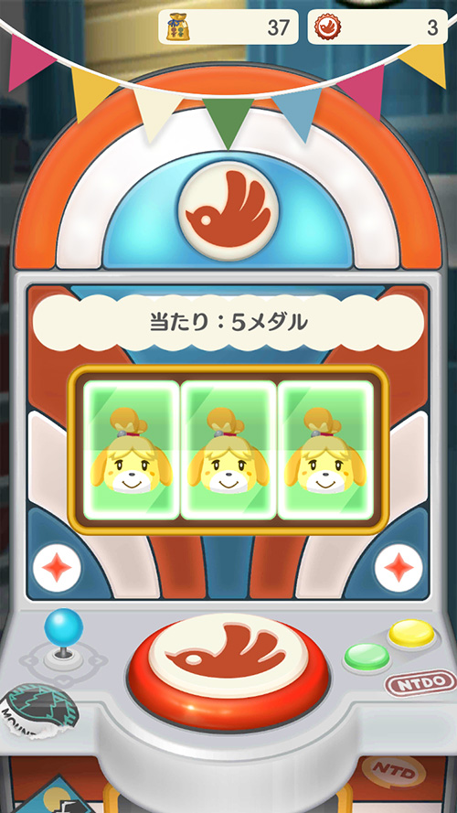 そこですべてのお客様が安心してプレイできるよう、開発スタッフとも相談して、レバーをボタンにしたり、777(スリーセブン)をそろえるような見た目からキャラクターの絵をそろえるように変更したりなど、OKゲームマシンをアミューズメント施設に置かれているような、かわいいゲーム機のデザインに変更してもらいました。