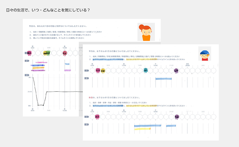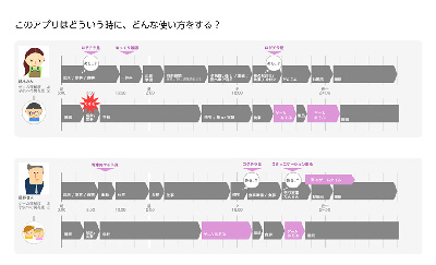 家族のあり方はさまざまだと思います。どういう家庭で、どういう状況でこの「悶々体験」が起こってしまうのか? を「ユーザの可視化」「ユーザの行動分析」「家族のそれぞれのタイムラインの見える化」といったいわゆる、サービスデザイン思考を愚直に重ね、チーム内での合意を大事にしながらサービスそのものを設計していきました。
