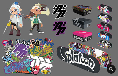 『スプラトゥーン』のゲーム開発の方にも協力してもらい、「シブヤ」のグラフィティのほかにも、キャラクターのイラストを作ったり、パターン素材も用意し、さまざまなグッズに落とし込んでいくことになりました。そうしてアパレルや文具など、最終的には100以上のグッズが商品化されました。なかでもお気に入りはスケートボードで、『スプラトゥーン』のストリートっぽい雰囲気にピッタリだと感じています。