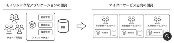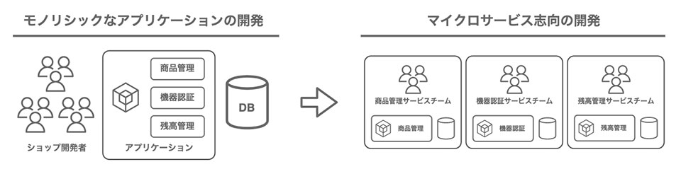 この問題を解消し、ショップへの機能要求に柔軟かつ迅速に対応できるようにするため、あらゆるeコマース機能を提供する1つの基盤(プラットフォーム)を構築することになりました。