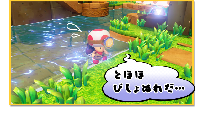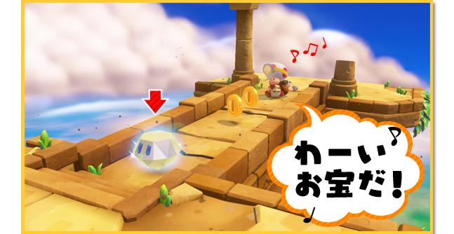 WiiU専用ソフト『進め!キノピオ隊長』は、ステージにあるお宝をさがしながらゴールのスターをめざす、箱庭アドベンチャー!行く手をはばむさまざまなしかけを乗りこえて、進め!キノピオ隊長!