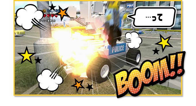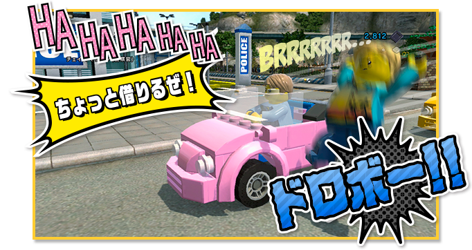 ちなみに、街に走っている車は、街の平和のため市民のみんなが快く(?)貸してくれるぞ。自分好みの車があったら、Xボタンで乗り込んじゃえ!