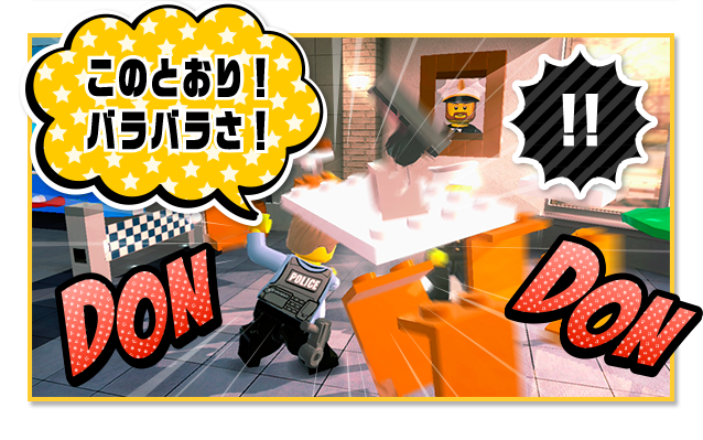 • なんでもガンガン壊せる! レゴブロックでできたものはなんでも壊すことができ、組み替えて別のものを作り上げるものもあります。