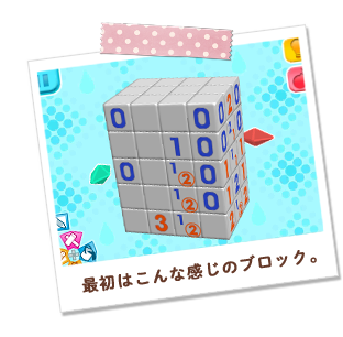 積み重なったブロックを壊したり、色で塗ったりして、隠れたカタチを見つけていく立体パズルゲーム、それが「カタチ新発見!立体ピクロス2」!ブロックの中には、動物や食べ物、のりものなどいろいろなカタチが隠れているよ!