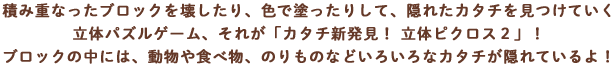カタチ新発見!立体ピクロス2™で遊べるよ!