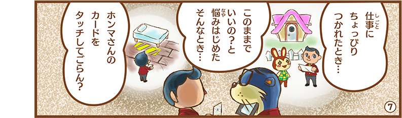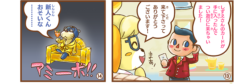 amiiboカードを読み込むと、カードのキャラクターが依頼を持って、たぬきハウジングにやって来ます。