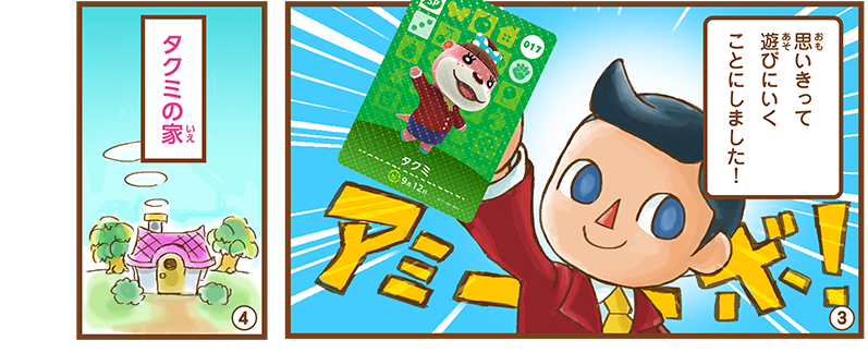 訪問先のどうぶつの家でamiiboカードをかざすとどうぶつが遊びに来てくれます。