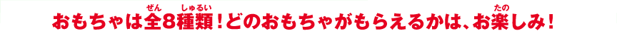 おもちゃは全8種類!どのおもちゃがもらえるかは、お楽しみ!