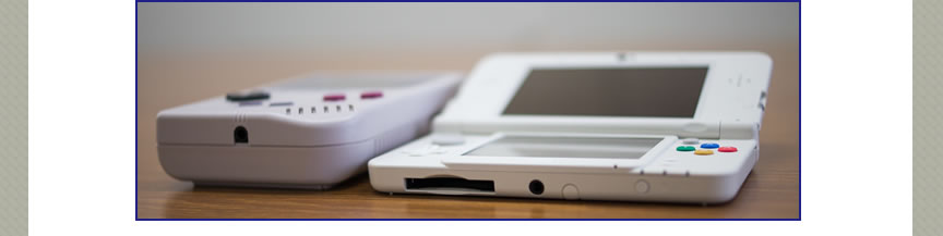 Newニンテンドー3DS(ひらいた状態)とならべて横からみてみると、こんな感じ!横幅はせまくて、ぶあついことがわかるね。