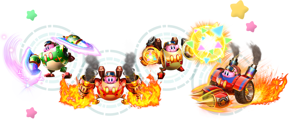 4. ロボボアーマーボディ ハルトニウム合金で作られた硬いボディ。カービィが乗ることでカラーリングが変化するが、そのメカニズムは謎である。手足をボディの中に収納できるほか、ボディ内部のパーツを分子レベルで組み替えることで、すぐに変形を行う!