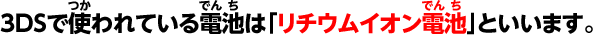 3DSで使われている電池は「リチウムイオン電池」といいます。