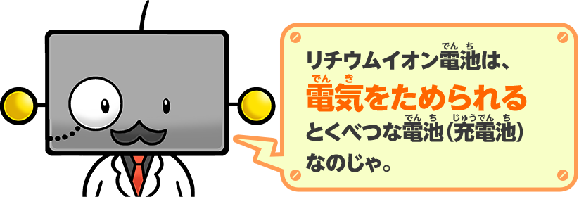 リチウムイオン電池は、電気をためられるとくべつな電池(充電池)なのじゃ。